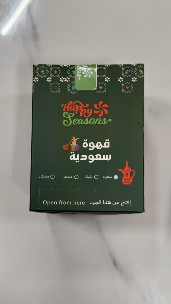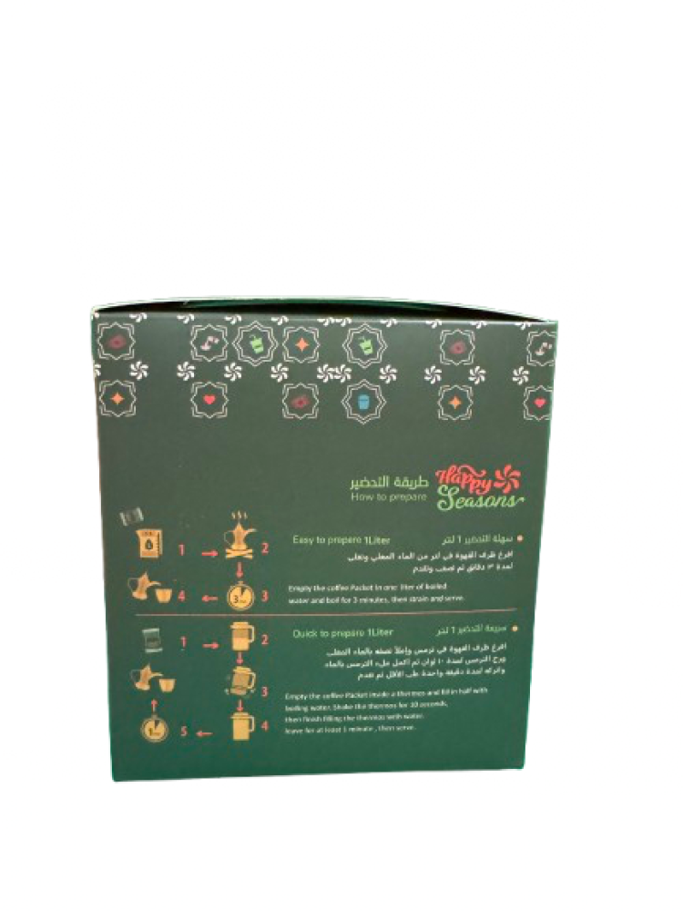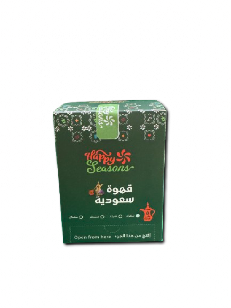 بوكس أظرف قهوة سعودية شقرا سريعة التحضير مكونه من ( بن ، هيل ، زعفران) ، يحتوي على ٨ أظرف كل ظرف يكفي لدلة ١ لتر ، طريقة التحضير جدا سهلة فقط اتبع التعليمات الموجودة على البوكس .